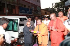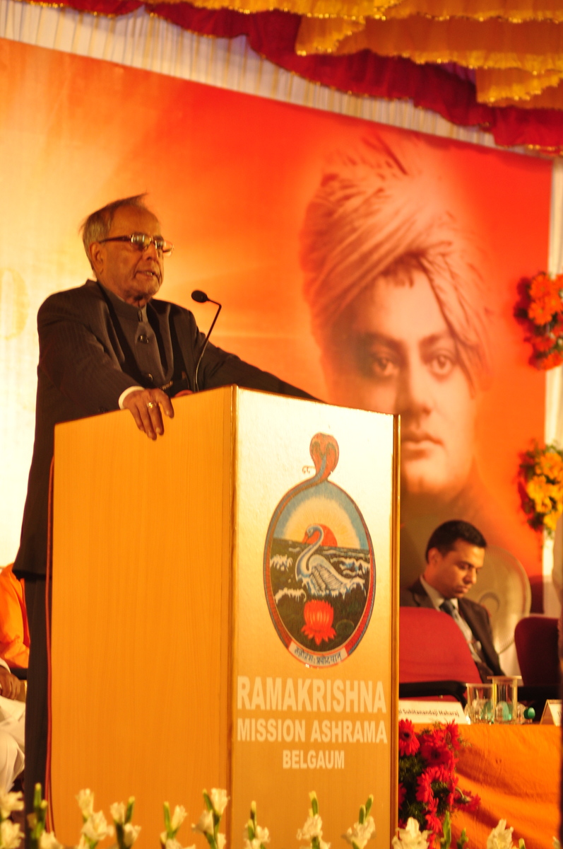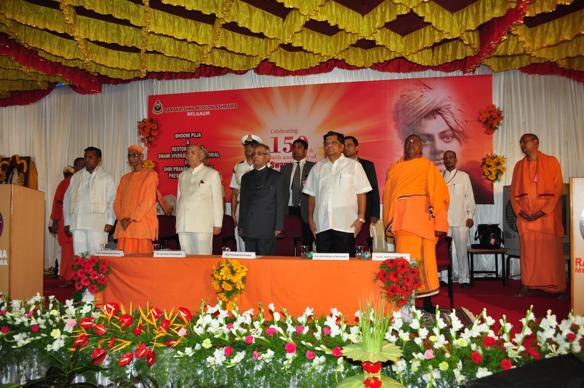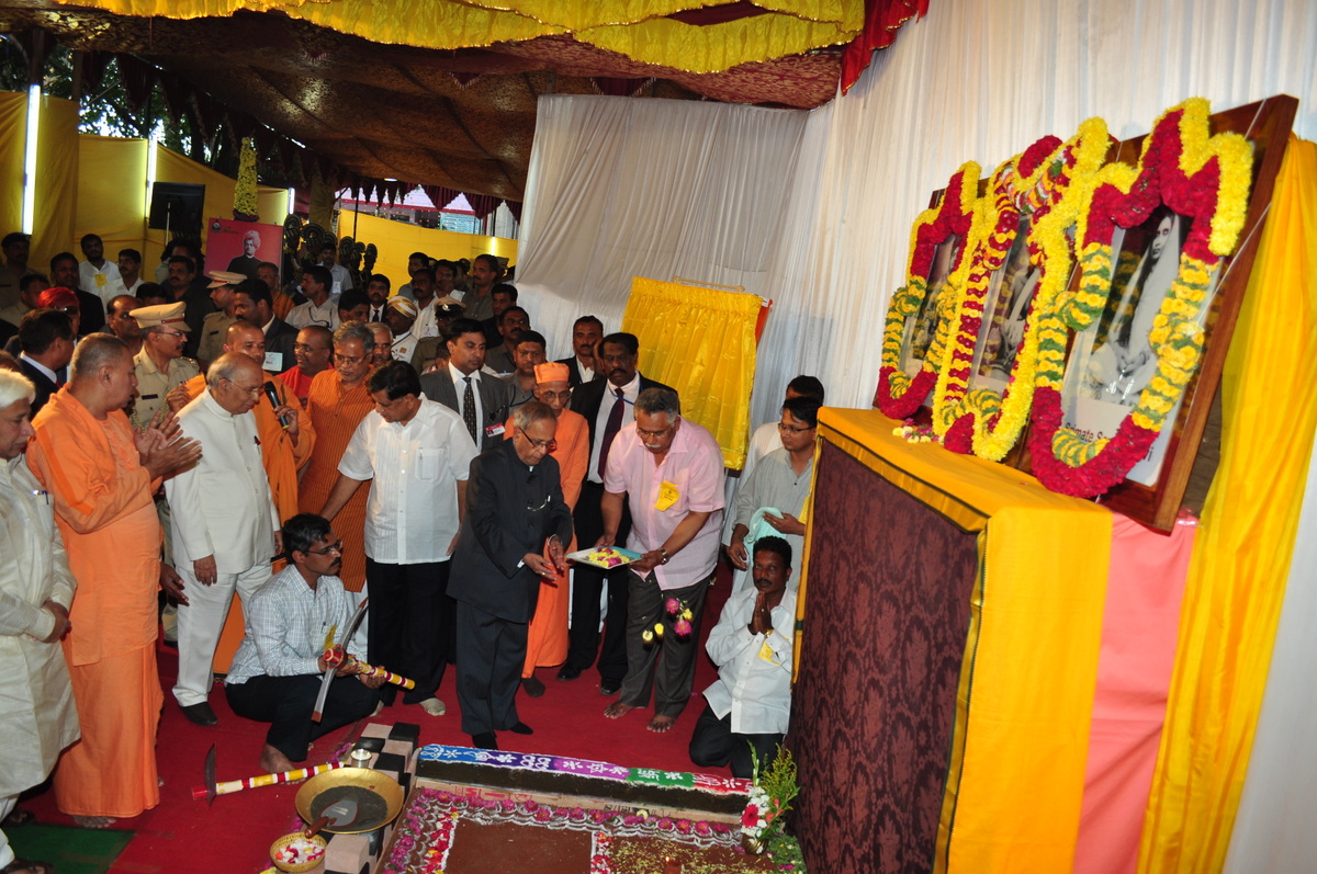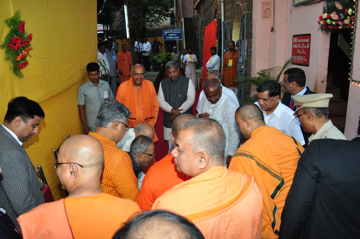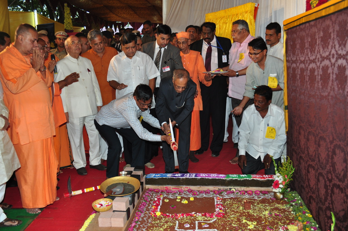 On 11th October 2012, Shri Pranab Mukherjee, the President of India was received by monks of the Ramakrishna Order, including the General Secretary, Srimat Swami Suhitanandaji Maharaj, who had come from Belur Math to be a part of this programme. The President was accompanied by the Governor of Karnataka, Shri Hansraj Bhardwaj and the Chief Minister of Karnataka, Shri Jagadish Shettar. Shri K. H. Muniyappa, Union Minister of State for Railways also accompanied the President on this occasion. Ministers of the Karnataka State Cabinet Shri Suresh Kumar, Minister for Law, Justice & Urban Development and
