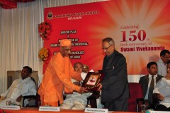 He expressed his respect for Swamiji and admired the rationality of Swamiji’s philosophy and outlook. The President praised the efforts of the Ramakrishna Math and Mission in spreading the message of Swamiji and also the various activities undertaken in the medical and educational fields and especially the distress relief works of the Mission during natural calamities. He also emphasized on the need for Value education in the country and hoped that the proposed Value Education centre would come up quickly to give a fillip to satisfying this need.