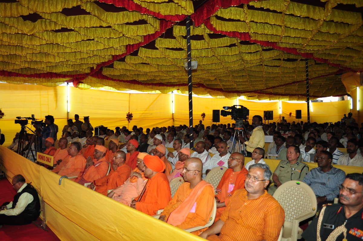 The audience comprised about 350 invitees including over 30 monks from the various Mission centres of Karnataka, Mumbai and Pune. Revered Swami Bhaumanandaji Maharaj, Swami Veetabhayanandaji Maharaj, Swami Pramatheshanandaji Maharaj, Swami Sarvalokanandaji, Swami Jitakamanandaji, Swami Muktidanandaji, Swami Bodhaswarupanandaji and other monks participated in this programme. The invitees included the leading figures of Belgaum and other devotees and admirers of Swamiji.