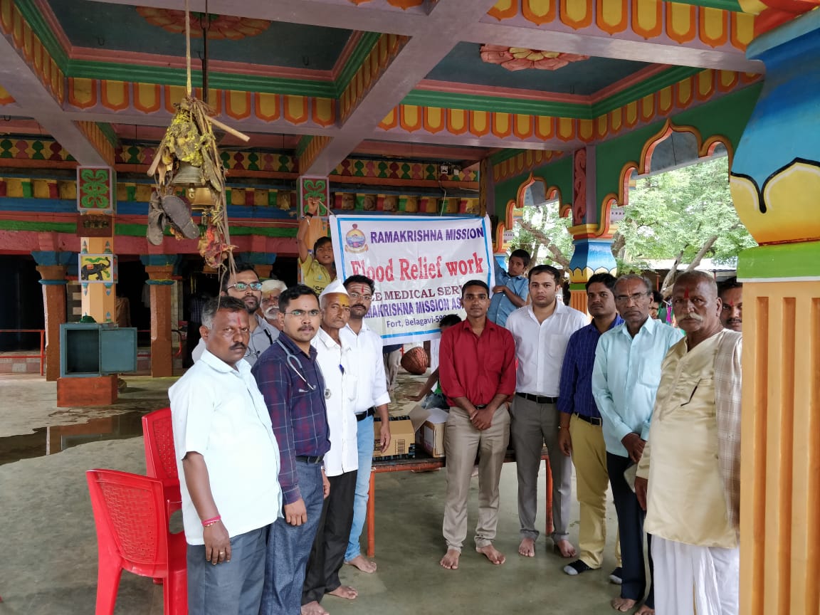 Medical Relief: A team of four doctors and others visited various flood affected places around Badakundri and Arujanawada in Hukkeri Taluk, Belagavi. A total of around 250 needy patients were examined and distributed essential medicines. They were also made aware about need for hygiene and safe drinking water.